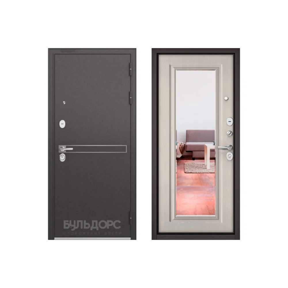 Металлическая дверь Бульдорс STANDART-90 Черный шелк D-4/Ларче бьянка с зеркалом